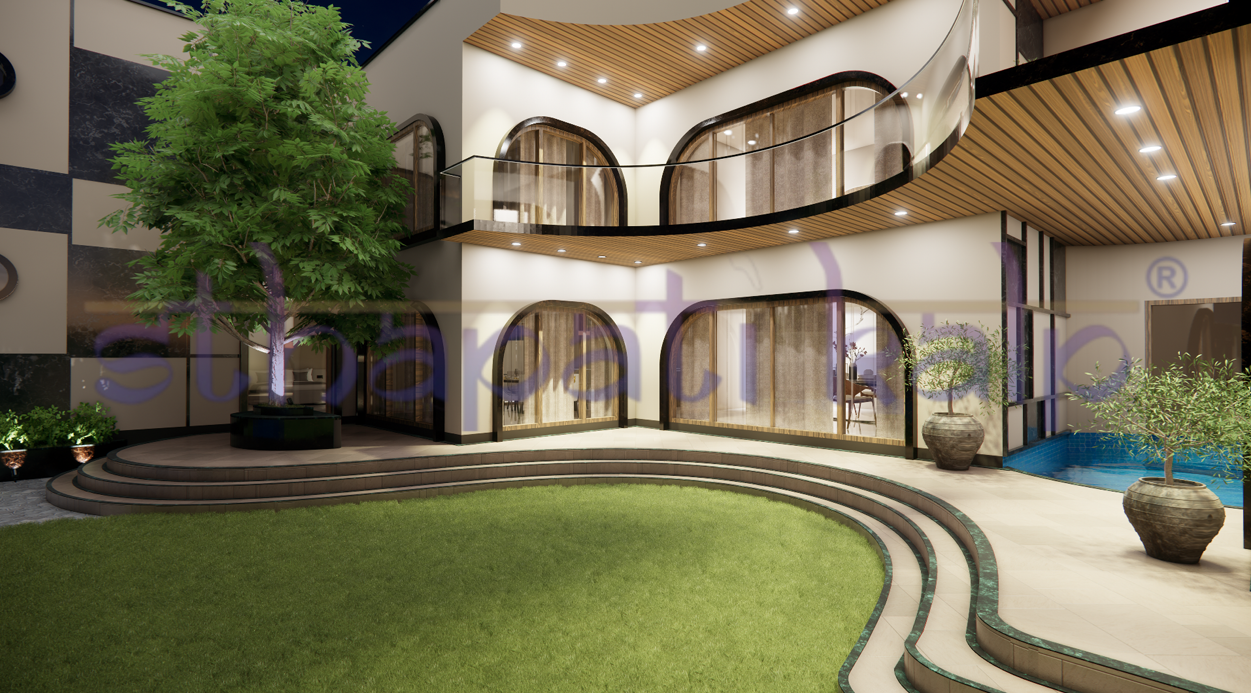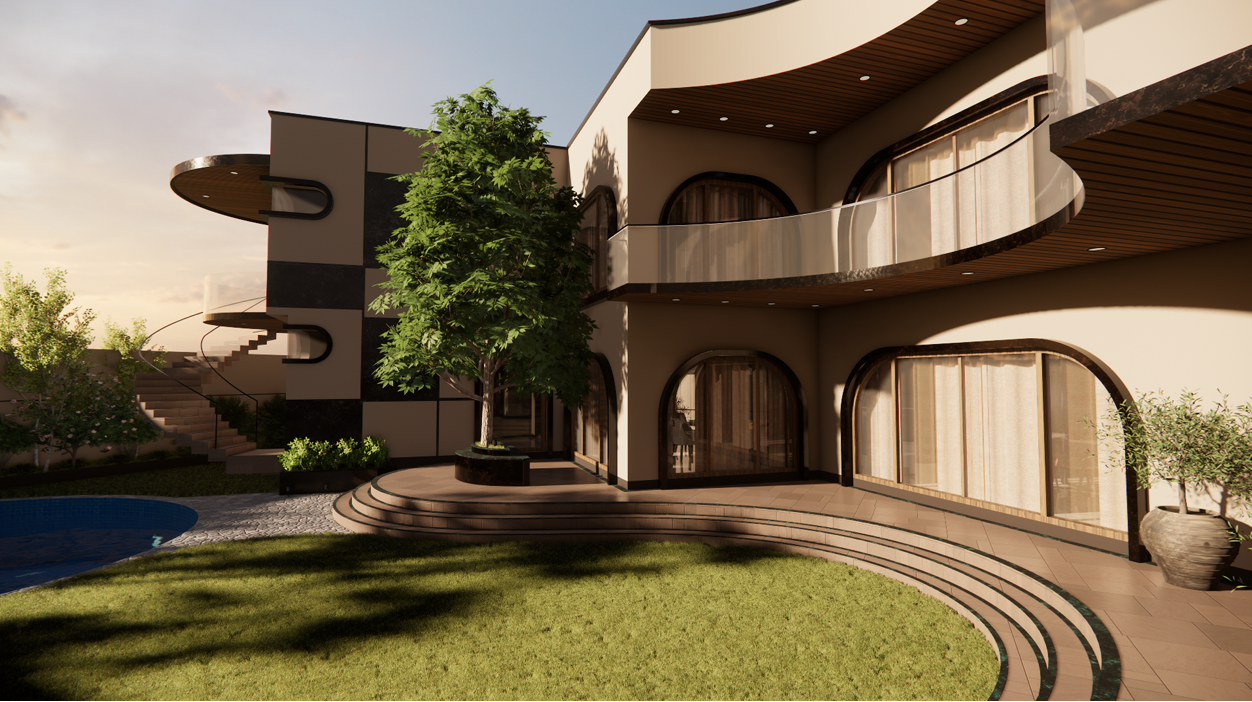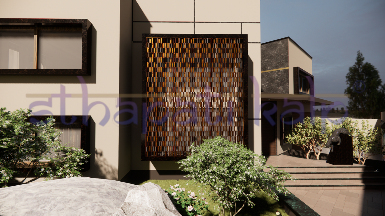 Designed on a site that has a rock outcrop at the corner of the entrance making it an interesting natural feature. The residence is for an elite Muslim family with heritage history. The front façade is designed in line with the intent of privacy with high walls. The space then opens up into a large garden on the side for family gatherings and lavish parties.