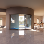 Extensive use of polished granite gives the home an ultra uber finish lined with gold inlay strips