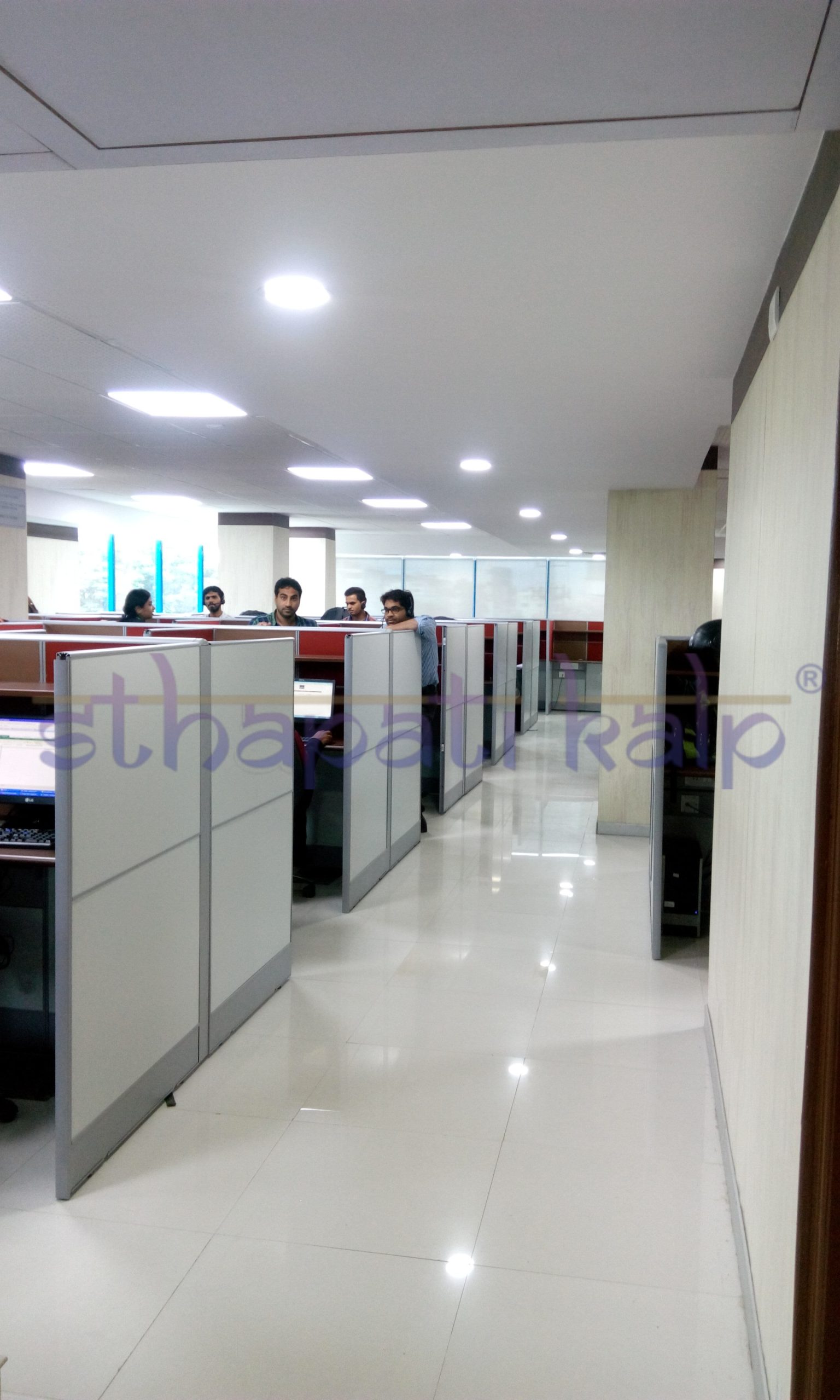 Ergo, the design is curated for high noise insulation, allowing each caller to be audible to their respective customer efficiently. The need for drinking water is also paramount for the job. A water point, rest room and meeting rooms have been incorporated into every floor in the scheme