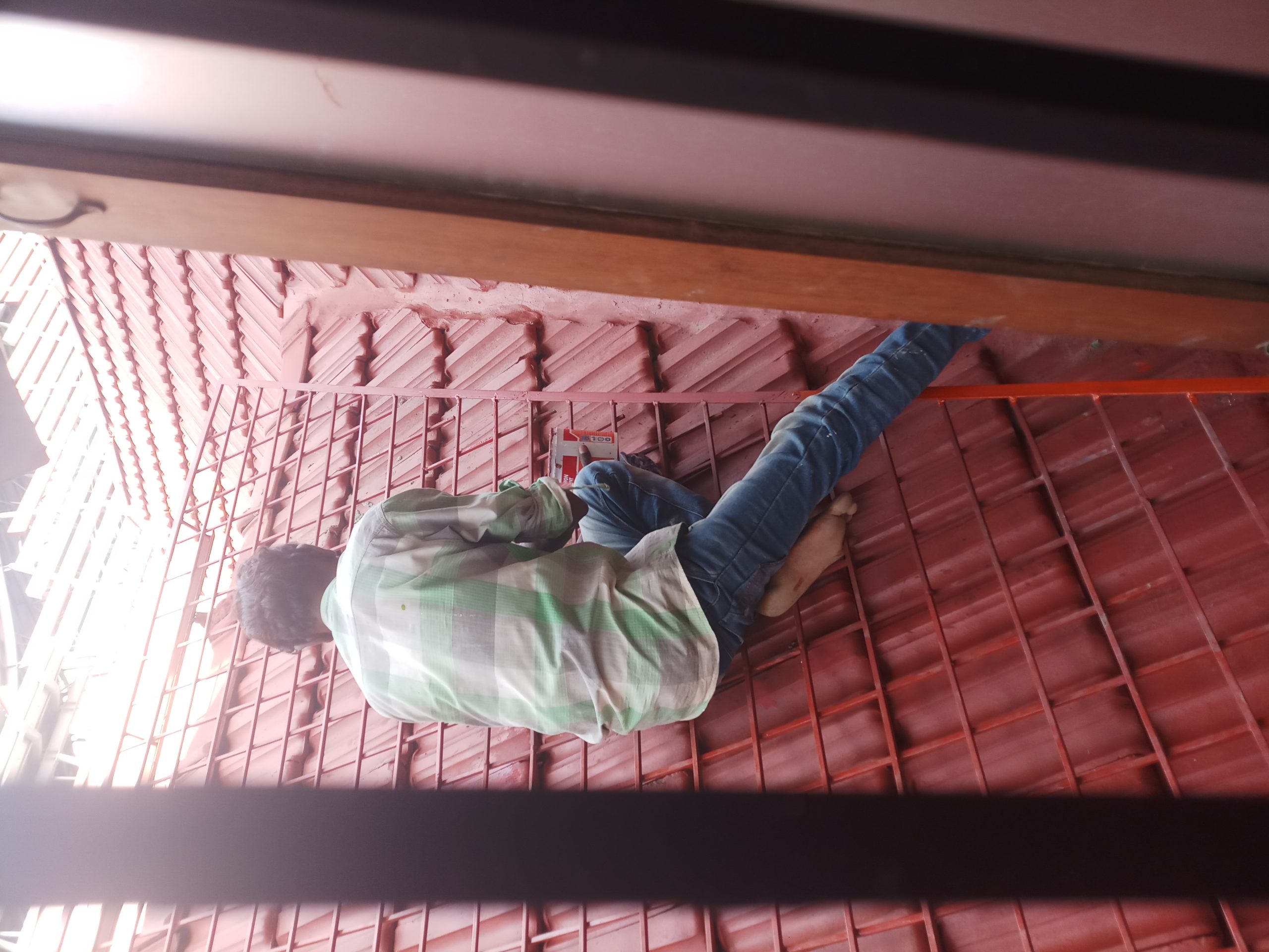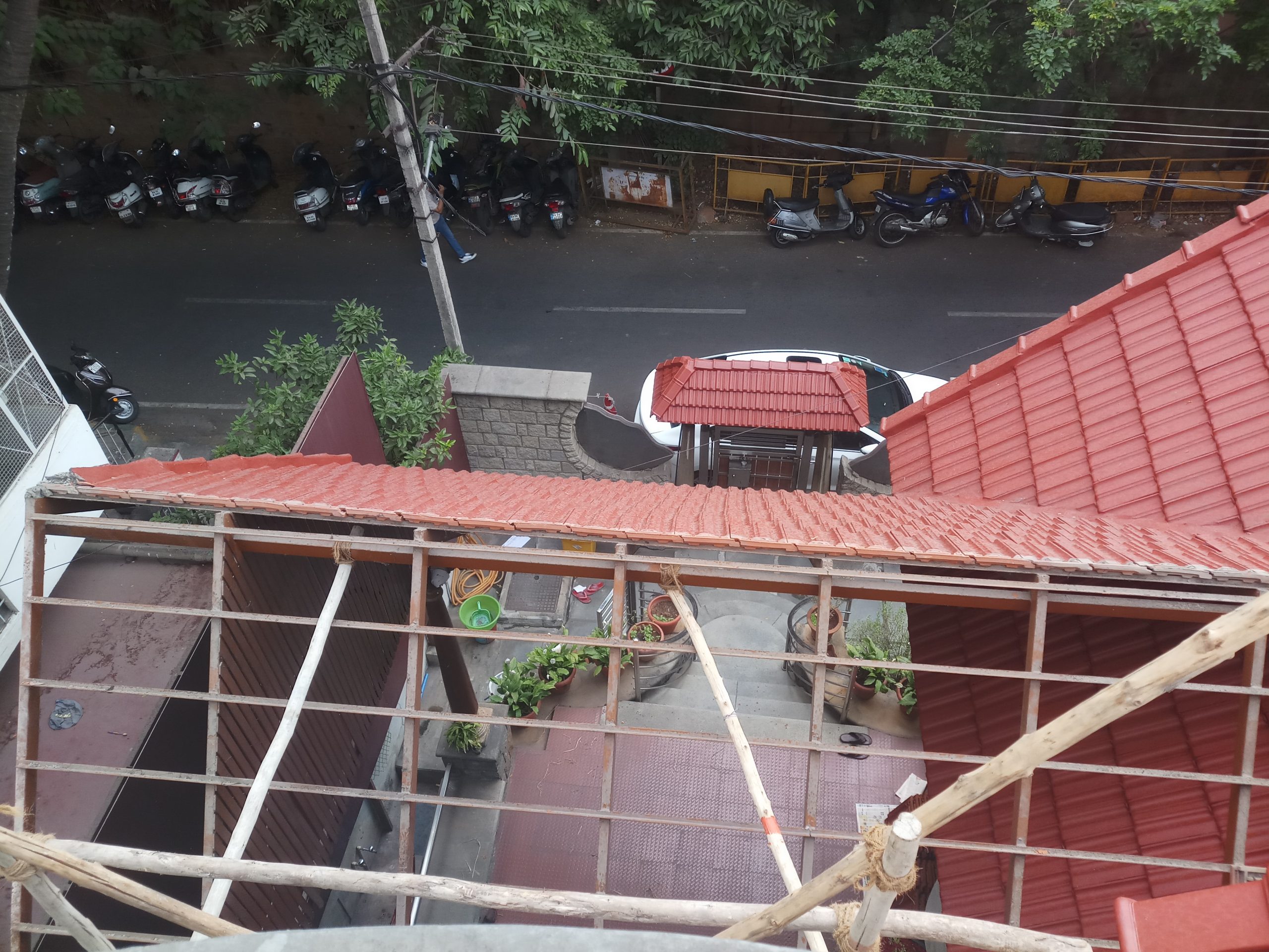 A residence built 25 years ago needed Mangalore tile roof upgrade along with a peculiar monkey menace causing constant tile damage. Protection from this became imperative. The broken tiles were replaced and the leaks were sealed. The entire roof structure was repainted and a layer of metal grill was then added to prevent any further damage, painted to camouflage with the tile itself