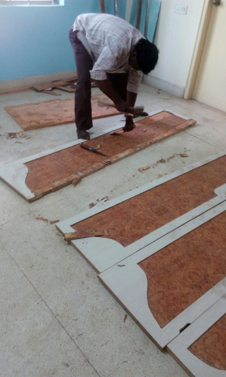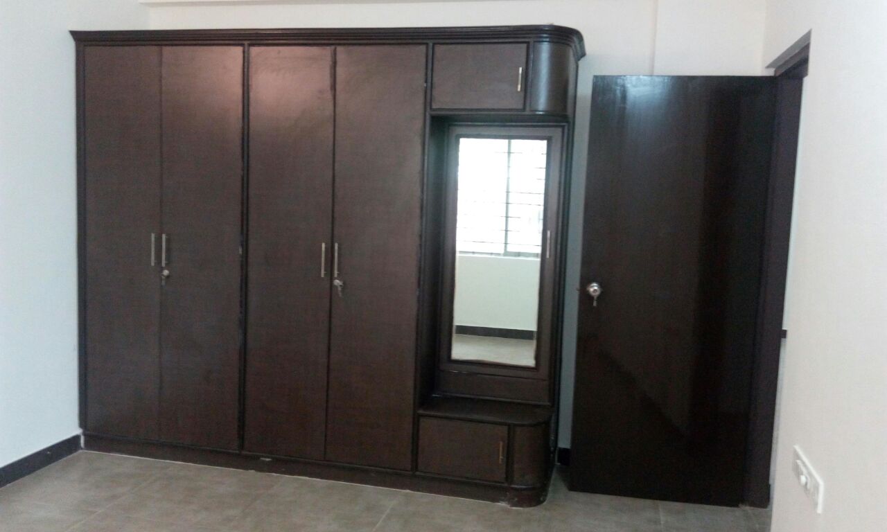 The apartment was one of the early residential units of Bengaluru with an NRI owner living in the USA which needed a complete revamp to be able to be rented out. The tiles and skirting were changed, electrical and plumbing was changed, the unkept and overgrown garden was cleared and the fixed woodwork façade were redone to give the apartment a fresh look
