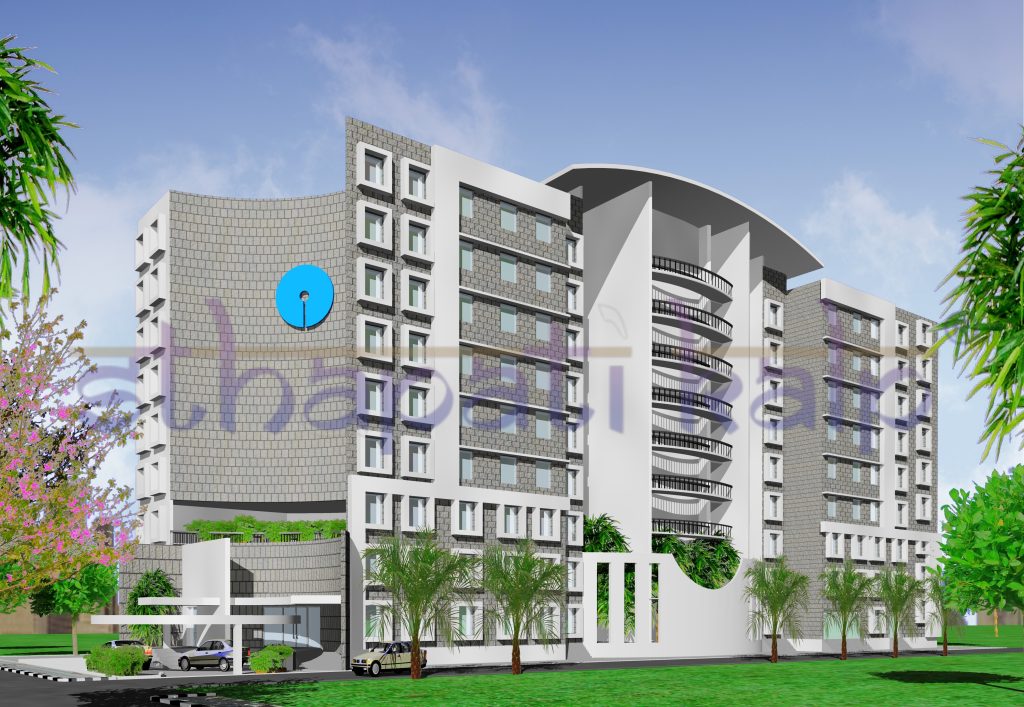 The building was conceptualized into 2 blocks with multiple floors connected by a central courtyard. The building was to be part of the old SBI headquarters designed in locally available stone and thus the new structure had to blend in, rather than stand out.
