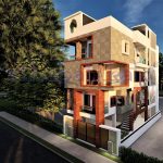 An extremely challenging project with a site level difference of 10ft from front to rear. Rear being lower as the site lies in a hilly terrain region in Mahalakshmi layout. The site also has a sand filling of 40’ from nearly half a century ago and 2 coconut trees on either front corner of property deflecting majorly in different directions much into the property boundary.